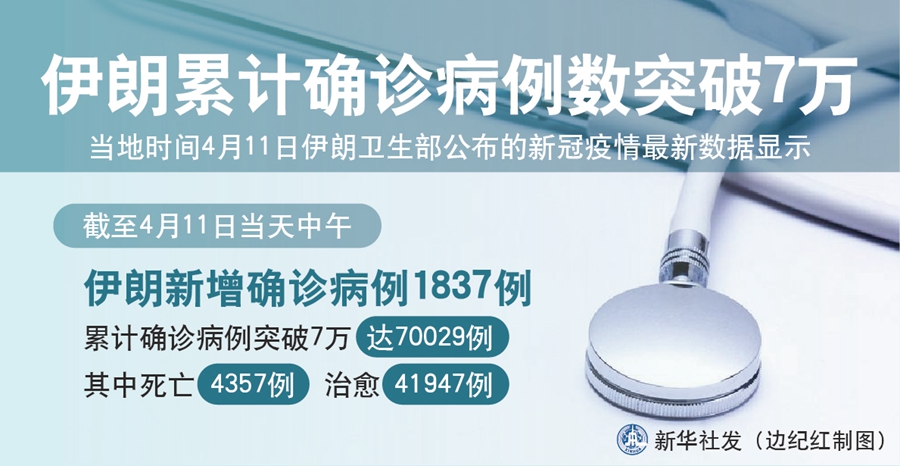 新華社德黑蘭4月11日電(記者陳霖)伊朗衛(wèi)生部11日公布的新冠疫情最新數(shù)據(jù)顯示,截至當(dāng)天中午,伊朗新增確診病例1837例,累計(jì)確診病例突破7萬,達(dá)70029例,其中死亡4357例,重癥3987例,治愈41947例。