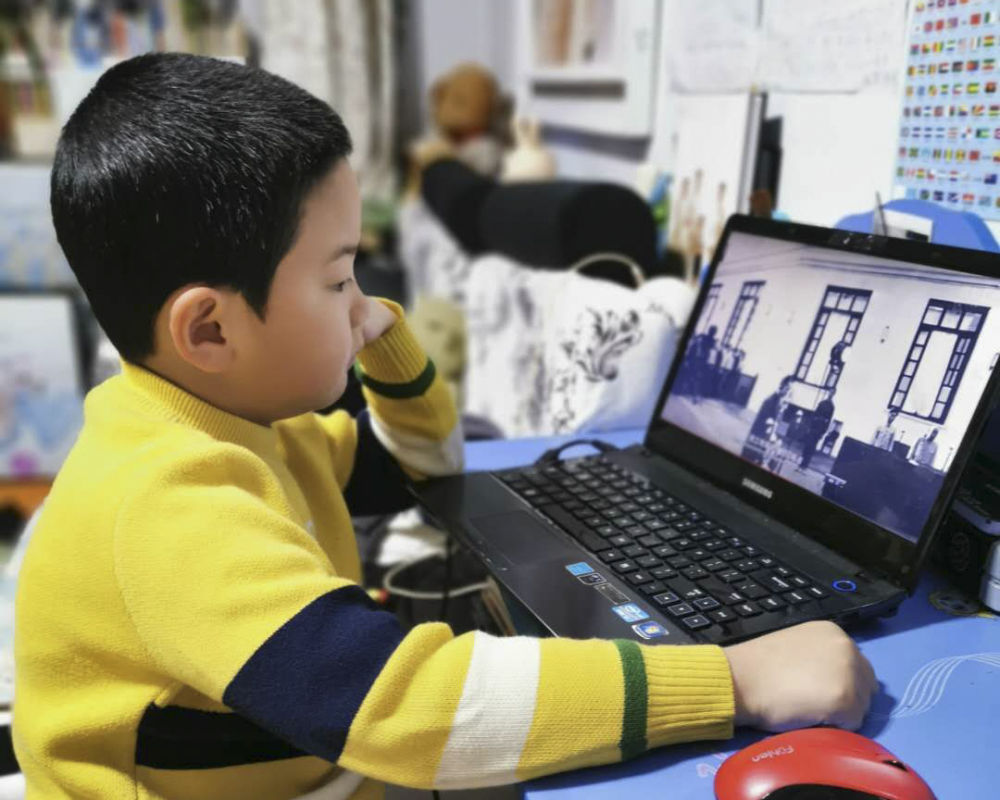 因為疫情“宅家”上網(wǎng)課的中小學(xué)生,