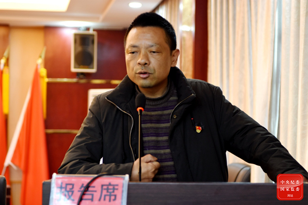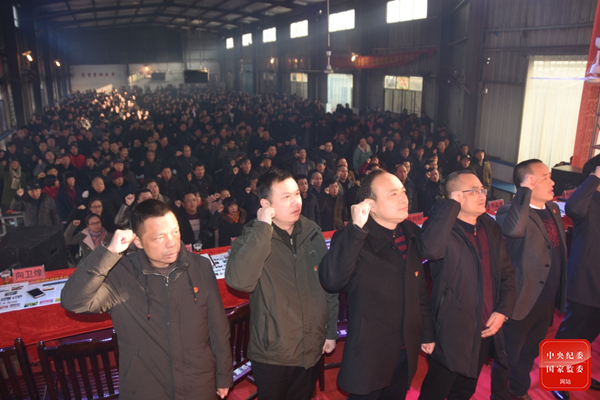 2019年1月,向衛(wèi)煌(前排左一)在雙峰縣井字鎮(zhèn)黨員冬訓(xùn)大會(huì)上重溫入黨誓詞。
