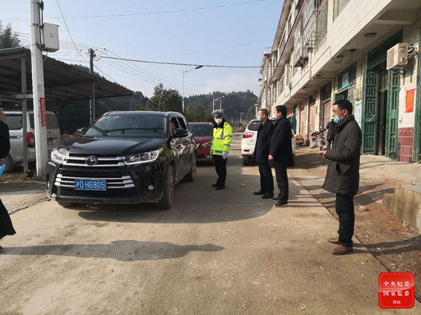 2月12日,向衛(wèi)煌在荷葉鎮(zhèn)益新村督查疫情防控措施落實(shí)情況。
