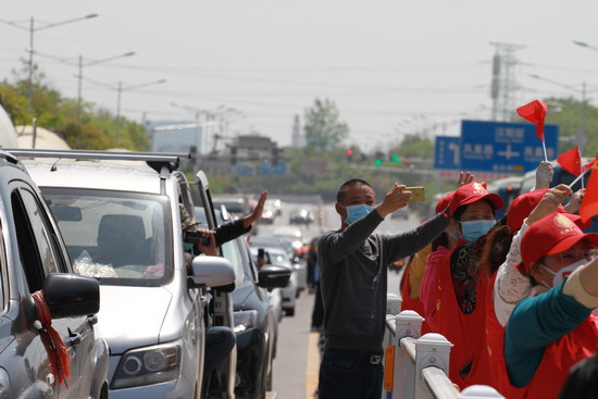 今天(4月15日)上午,北京協(xié)和醫(yī)院醫(yī)療隊(duì)撤離武漢。至此,來(lái)自全國(guó)各地的346支援鄂醫(yī)療隊(duì)撤離完畢。北京協(xié)和醫(yī)院醫(yī)療隊(duì)撤離時(shí),在駐地中核國(guó)際酒店旁邊的居民樓,有武漢市民在陽(yáng)臺(tái)不?;蝿?dòng)紅色被子為醫(yī)療隊(duì)送行。