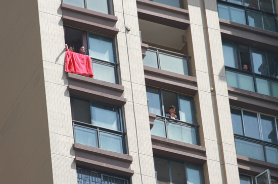 有武漢人陽(yáng)臺(tái)曬出紅被子為醫(yī)療隊(duì)送行。