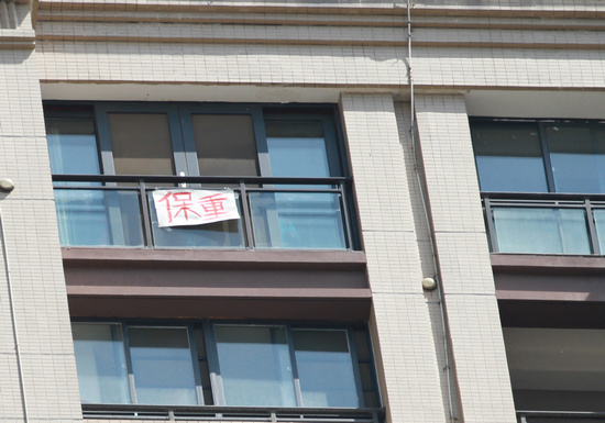 武漢市民陽(yáng)臺(tái)打出標(biāo)語(yǔ):保重!