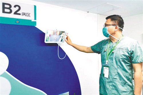 原慶通過可視系統(tǒng)與患者病房對話。余易安攝(中經(jīng)視覺)