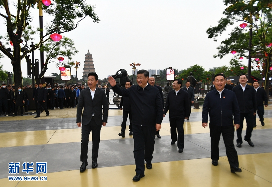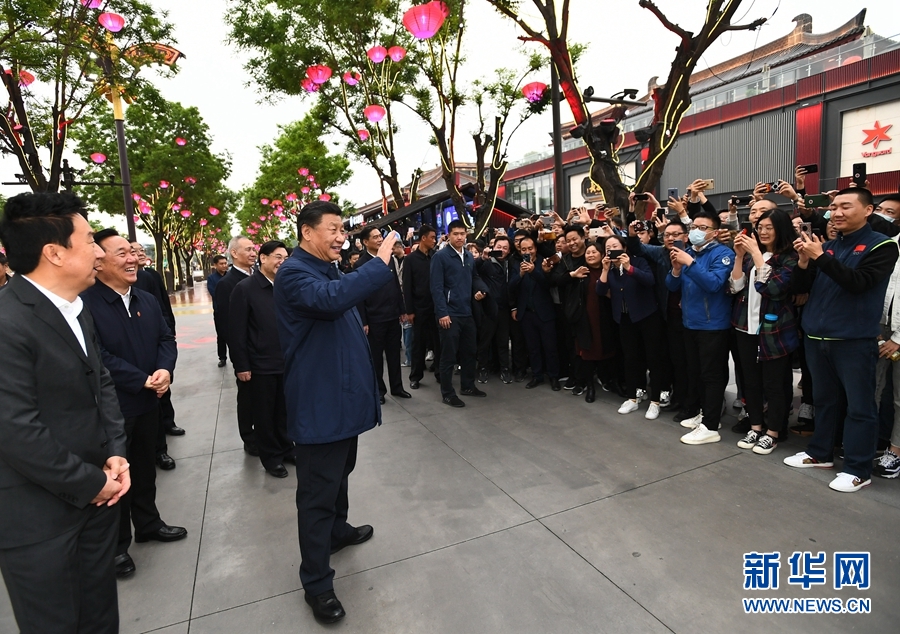 4月20日至23日,中共中央總書記、國(guó)家主席、中央軍委主席習(xí)近平在陜西考察。這是4月22日,習(xí)近平在西安大唐不夜城步行街考察時(shí),向游客揮手致意。 新華社記者 謝環(huán)馳 攝
