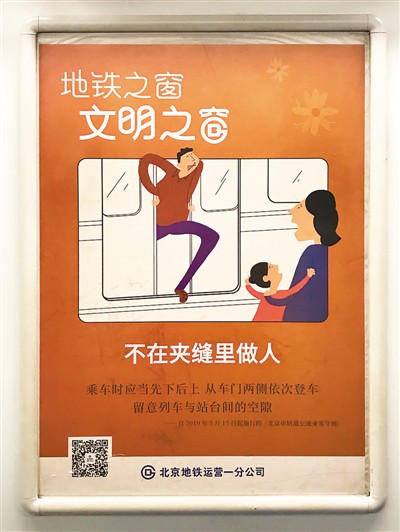 北京地鐵車(chē)廂內(nèi)的文明宣傳廣告。王晶玥攝
