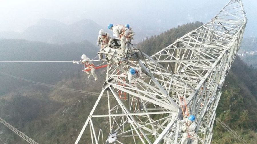 第一次爬塔時(shí),田貴陽(yáng)心里直打怵?!坝?xùn)練的時(shí)候,師傅教我們不要往下看,往上看,看著腳釘往上爬?!爆F(xiàn)在,工作12年的他早已輕車熟路,120米高的過(guò)江塔,蹭蹭蹭六七分鐘就爬了上去。而上了塔工作才剛開(kāi)始,要是碰上任務(wù)多,在半空一待就得五六個(gè)小時(shí)。