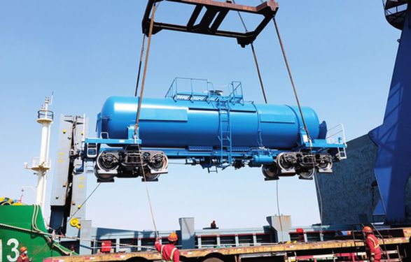 中車(chē)齊齊哈爾車(chē)輛有限公司出口韓國(guó)的濃硫酸罐車(chē)準(zhǔn)備啟程發(fā)運(yùn)(4 月 8 日攝) 宮巖攝 / 本刊