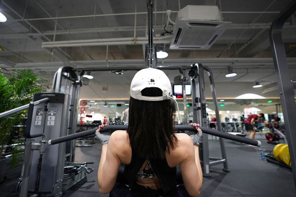 一位女孩在健身房內健身鍛煉