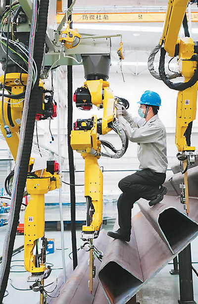 河北唐山國家高新技術(shù)產(chǎn)業(yè)開發(fā)區(qū)內(nèi)工人在調(diào)試智能焊接機(jī)械手。新華社記者 楊世堯攝
