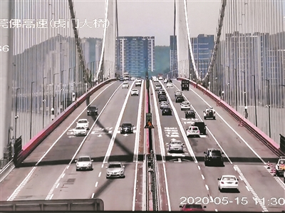 虎門(mén)大橋昨日通車后橋面交通監(jiān)控截圖。