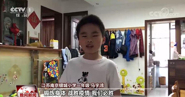 江蘇南京銀城小學一年級 馬宇鴻:在家我學到了一些新技能。前滾翻、雙手拍籃球、玩橢圓機……鍛煉身體,戰(zhàn)勝疫情,我們必勝!
