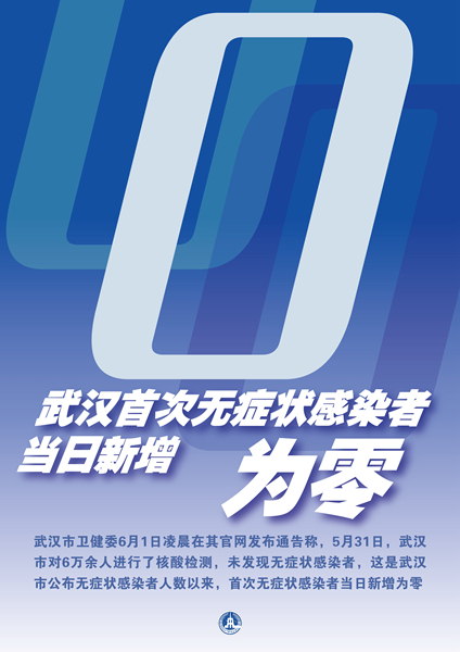 新華社武漢6月1日電 武漢市衛(wèi)健委6月1日凌晨在其官網(wǎng)發(fā)布通告稱(chēng),5月31日,武漢市對(duì)6萬(wàn)余人進(jìn)行了核酸檢測(cè),未發(fā)現(xiàn)無(wú)癥狀感染者,這是武漢市公布無(wú)癥狀感染者人數(shù)以來(lái),首次無(wú)癥狀感染者當(dāng)日新增為零。