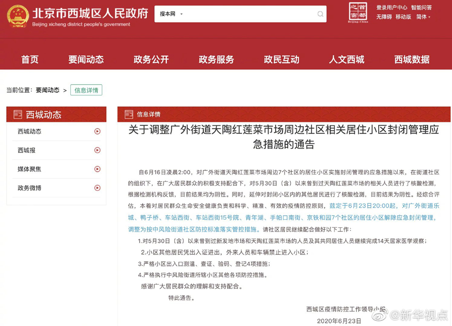 北京西城天陶紅蓮菜市場周邊7社區(qū)解除應(yīng)急封閉管理-新華網(wǎng)