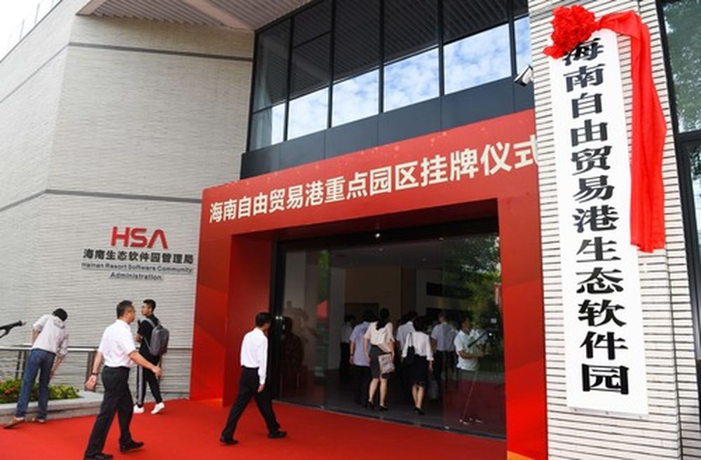 在海南澄邁縣拍攝的海南自由貿易港生態(tài)軟件園掛牌儀式現場。(新華社記者楊冠宇 攝)