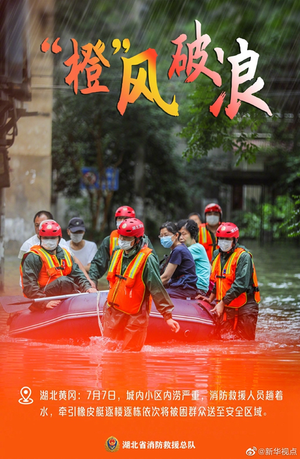 湖北近期遭遇持續(xù)強(qiáng)降雨天氣,部分地區(qū)出現(xiàn)洪澇災(zāi)害。洪水襲來,在救援現(xiàn)場(chǎng)奔波忙碌的消防救援人員,始終沖在一線,“橙”風(fēng)破浪,守護(hù)著人民群眾的生命和財(cái)產(chǎn)安全。這抹“橙”,成為災(zāi)區(qū)人民心中最溫暖的底色。向“逆行者”致敬?。ㄓ浾吡航◤?qiáng))