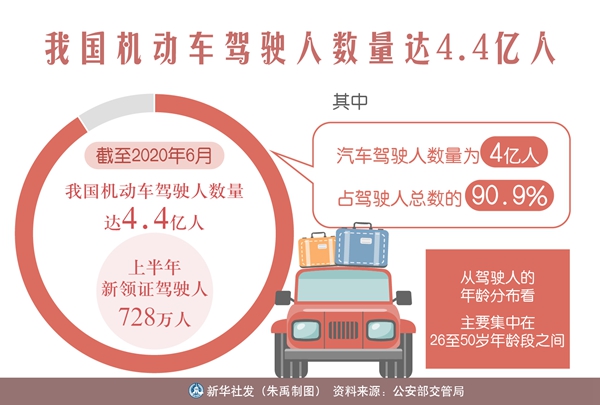 新華社北京7月18日電(記者劉奕湛)公安部交管局日前發(fā)布數(shù)據顯示,截至2020年6月,我國機動車駕駛人數(shù)量達4.4億人,上半年新領證駕駛人728萬人。