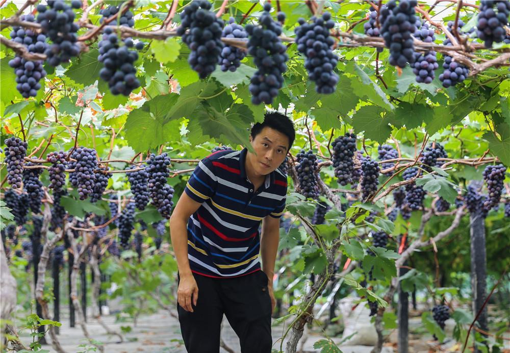 在四川省眉山市彭山區(qū)果園村,張雄在查看葡萄長(zhǎng)勢(shì)(6月16日攝)。新華社記者 王曦 攝