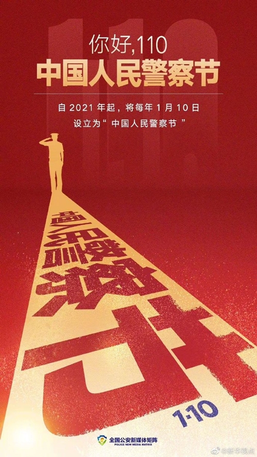 記者從公安部獲悉,近日,經(jīng)黨中央批準(zhǔn)、國務(wù)院批復(fù),自2021年起,將每年1月10日設(shè)立為“中國人民警察節(jié)”。這是在國家層面專門為人民警察隊伍設(shè)立的節(jié)日。