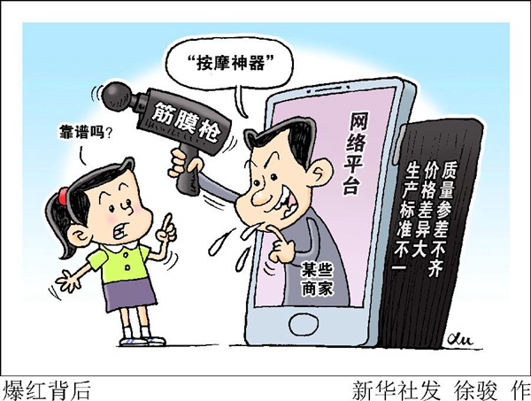 筋膜槍似乎“一夜”出圈成為網(wǎng)紅產(chǎn)品。今年“6.18”網(wǎng)絡(luò)購(gòu)物平臺(tái)活動(dòng)首日,某品牌筋膜槍開售1小時(shí)即突破百萬元銷售額。在某直播平臺(tái),一位網(wǎng)絡(luò)達(dá)人首次帶貨就售出5000多件,累計(jì)銷售額近500萬元。還有明星在視頻平臺(tái)推廣,1萬余件產(chǎn)品幾乎“秒搶”。