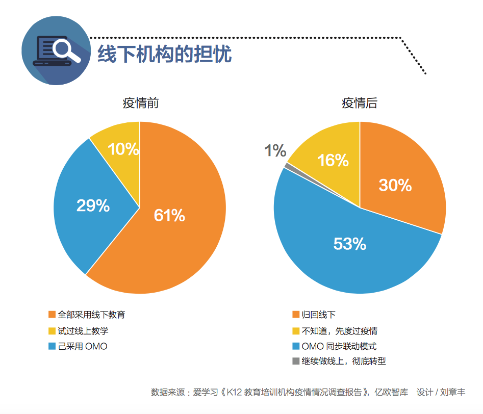 這是一場洗牌,也是一次危機轉換的當口。線下教培機構復工難,且面臨著用戶退費的風險,淘汰潮可謂洶涌。同時,眾多線下機構開始轉型到線上教育行業(yè),但是競爭力不如行業(yè)頭部企業(yè),如何發(fā)揮線下優(yōu)勢,危機中尋求機遇?許多企業(yè)選擇了OMO模式(線上和線下的融合)。