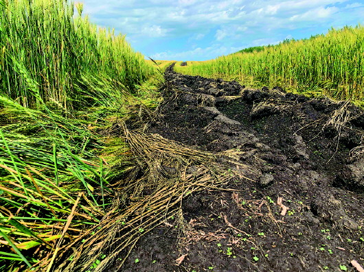 記者現(xiàn)場看到,陳巴爾虎旗特尼河林場大片大片麥田、油菜田里,被鏟出一道道觸目驚心、黑綠相間的“斑馬線”?!霸儆惺嗵炀鸵崭盍耍F(xiàn)在毀了實在可惜!”附近群眾說。