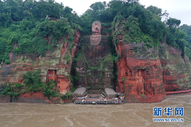 為應(yīng)對強(qiáng)降雨,樂山大佛景區(qū)管委會于8月17日凌晨提前關(guān)閉景區(qū),對包括樂山大佛本體在內(nèi)的各級文物保護(hù)單位、碼頭及游船、施工場地等開展安全隱患排查整治,并將沙袋運(yùn)往佛腳平臺沿佛腳腳踏堆放,以避免洪水對大佛本體的直接沖撞。