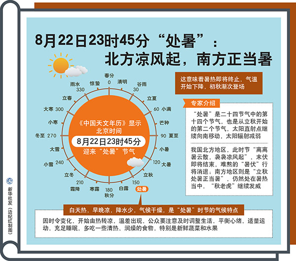 圖表:8月22日23時45分“處暑”:北方?jīng)鲲L起,南方正當暑 新華社發(fā) 邊紀紅 制圖