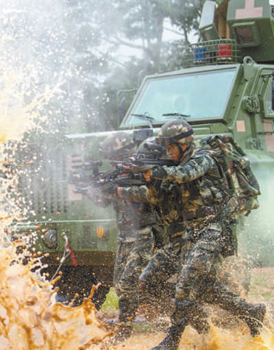 雨林深處,中隊開展處置暴恐實戰(zhàn)演練,錘煉實戰(zhàn)本領(lǐng)。王文濤攝