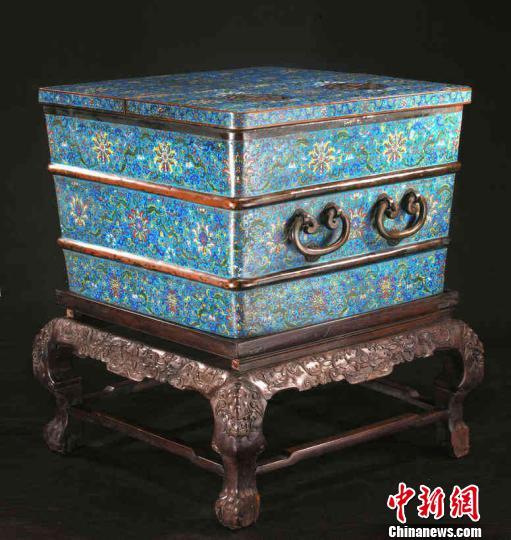 ↑清乾隆款掐絲琺瑯寶相花大冰箱。沈陽故宮供圖