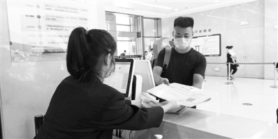 8月22日,一位企業(yè)負(fù)責(zé)人在天津市濱海新區(qū)政務(wù)服務(wù)辦全流程自動化制證中心領(lǐng)取排污許可證。新華社記者 王井懷攝