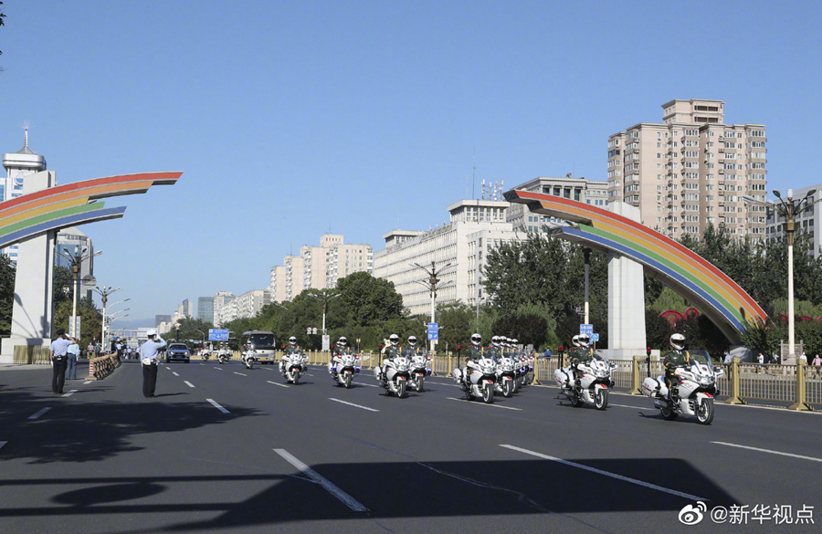 國家勛章和國家榮譽(yù)稱號(hào)獲得者集體乘坐禮賓車從住地出發(fā),由國賓護(hù)衛(wèi)隊(duì)護(hù)衛(wèi)前往人民大會(huì)堂。