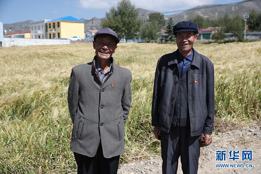 東達(dá)村黨員徐國才(左一)、楊發(fā)財(cái)接受記者采訪,他們也是東達(dá)村的致富能人。新華網(wǎng)記者焦鵬攝
