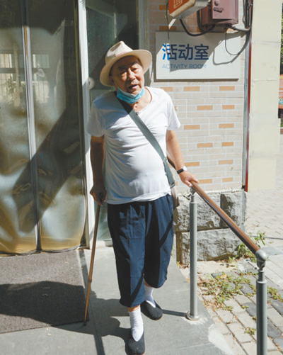 北京市海淀區(qū)北下關(guān)街道南里二社區(qū)經(jīng)過適老化改造后,老人生活更加方便。圖為社區(qū)養(yǎng)老服務中心門口,腿腳不便的老人依靠扶手出門。記者 申少鐵攝