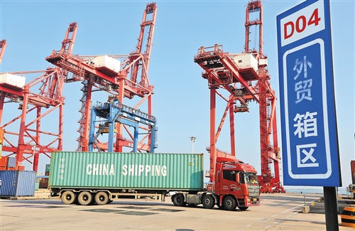 近日,運(yùn)輸車輛在江蘇連云港集裝箱碼頭轉(zhuǎn)運(yùn)集裝箱準(zhǔn)備裝船出口國外。 海關(guān)總署發(fā)布的數(shù)據(jù)顯示,今年前8個(gè)月,我國貨物貿(mào)易進(jìn)出口總值20.05萬億元,同比下降0.6%,降幅持續(xù)收窄,接近“轉(zhuǎn)正”。