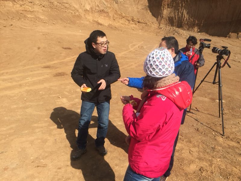 2018年初,谷業(yè)凱在陜西采訪一線測繪隊員。