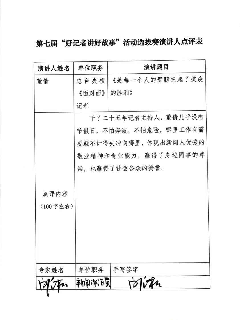 在中央廣播電視總臺武漢新冠肺炎疫情報道團(tuán)隊里,董倩在記者中年齡最長、資格最老、知名度最高。在武漢的95天,她完成了125期大屏直播、《面對面》訪談和新媒體《武漢觀察》,還主持了40期《武漢直播間》訪談節(jié)目。這些來自抗擊疫情一線的全景式報道,社會反響很大,不少節(jié)目播出以后點擊量都在上億次,發(fā)揮的作用得到中央領(lǐng)導(dǎo)同志充分肯定和社會各界高度評價。期間,除了因接觸到確診患者而必須隔離的4天外,董倩每天都在采訪。腰肌勞損疼得她夜里睡覺無法翻身,眼睛上麥粒腫發(fā)炎直流眼淚,她沒有休息過一天。她還不顧個人安危,40多次進(jìn)入紅區(qū)采訪。對于她來說,去哪里采訪的標(biāo)準(zhǔn)只有一個:應(yīng)不應(yīng)該去報道,有沒有價值被報道。通過她的采訪,人們認(rèn)識了身患漸凍癥仍然到處奔波的金銀潭醫(yī)院院長張定宇,輾轉(zhuǎn)三百多公里四天三夜返回崗位的90后女孩甘如意,以志愿者身份搞定醫(yī)護(hù)人員生活難題的快遞小哥汪勇,主動請纓實施第一例新冠肺炎逝者遺體解剖的法醫(yī)劉良……面對武昌醫(yī)院殉職院長劉智明的妻子蔡利萍時,董倩強(qiáng)忍淚水,握著對方的手給予慰藉;72歲的中醫(yī)大家張伯禮流著眼淚對董倩說:你太會問了!在全國抗擊新冠肺炎疫情表彰中,董倩被授予“全國抗擊新冠肺炎疫情先進(jìn)個人”稱號。
