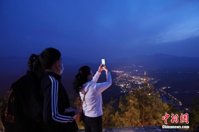 資料圖:游客在北京古北水鎮(zhèn)景區(qū)司馬臺長城夜游。 記者 蘇丹 攝
