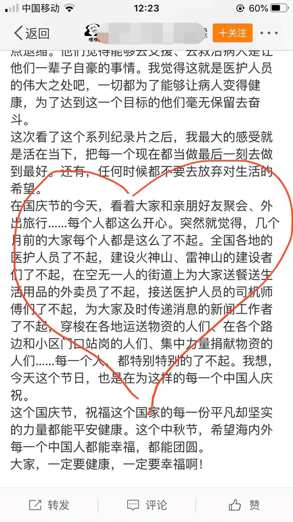 正如網(wǎng)友所說:“這個(gè)國(guó)家,真的很不容易?!钡舱且?yàn)樵?jīng)的艱難,才讓所有經(jīng)歷過那些驚惶、擔(dān)憂、迷茫的人,在重回平靜的生活后,會(huì)倍感山川清秀、歲月溫柔,那之前被按下暫停鍵的團(tuán)圓飯、那口早就該喝下的老燒酒、還有那個(gè)欠下好久的擁抱,都會(huì)帶給人更強(qiáng)烈的幸福。