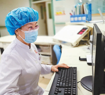 新疆醫(yī)科大學(xué)第五附屬醫(yī)院護(hù)理人員在核對醫(yī)囑。金 娜攝