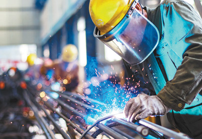 江蘇無錫的蘇錫常太湖隧道鋼筋加工車間,工人在焊接鋼筋籠。蔡朝陽攝(人民視覺)
