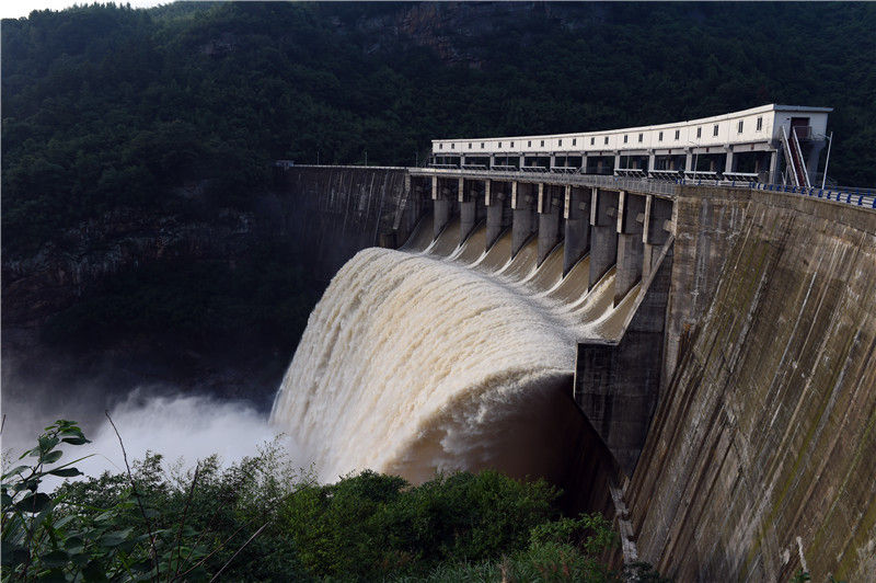 位于安徽省金寨縣的流波水庫在進(jìn)行泄洪(6月16日攝)。新華社記者 周牧 攝