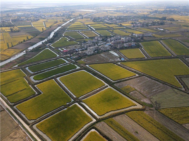 這是10月8日拍攝的安徽省潁上縣八里河鎮(zhèn)的稻田(無人機(jī)照片)。新華社記者 周牧 攝