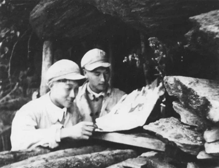 一天晚上9時(shí)左右,一架美軍B-29轟炸機(jī)投下的炸彈突然在離掩蔽部幾米的空地上爆炸,窗戶紙被震成碎片,蠟燭被震滅,桌上的稿紙飛了一地,大家馬上飛奔進(jìn)洞。
