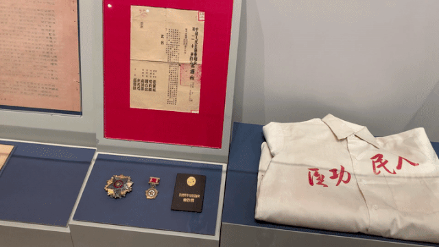 在新華社社史館二樓的展廳里,除了上述文字,還擺放著當(dāng)年電文的手寫原稿,戰(zhàn)地記者的筆記本、記者證,以及獲得的各種軍功獎(jiǎng)?wù)拢€有戰(zhàn)場(chǎng)上用過的電文發(fā)報(bào)機(jī)……