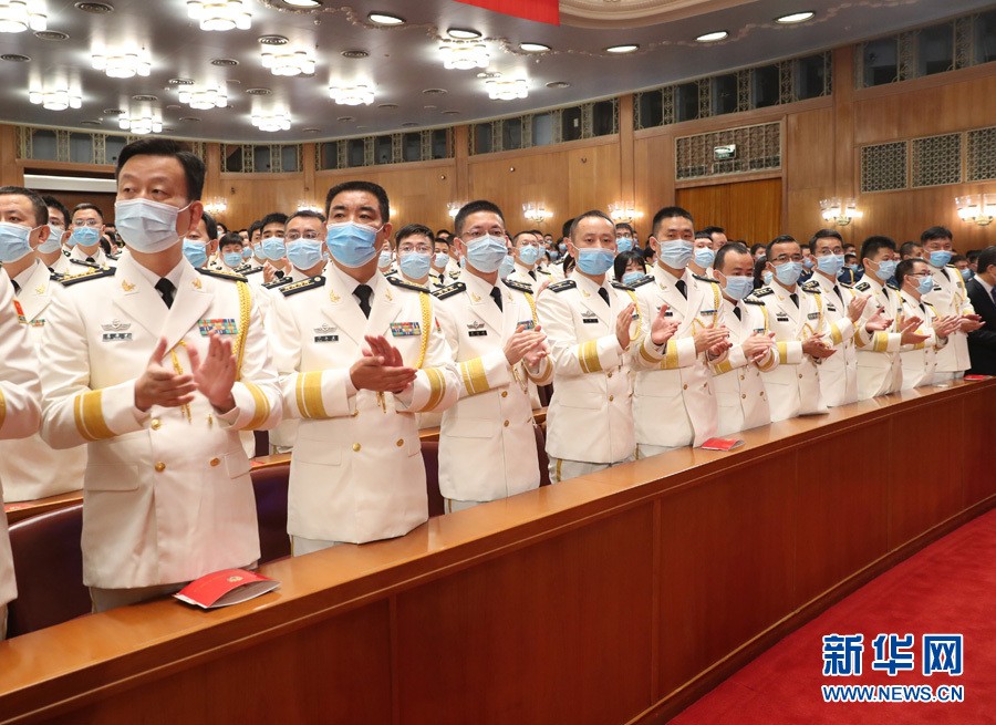 ??? 10月23日,紀(jì)念中國(guó)人民志愿軍抗美援朝出國(guó)作戰(zhàn)70周年大會(huì)在北京人民大會(huì)堂隆重舉行。圖為志愿軍老戰(zhàn)士、老同志入場(chǎng)時(shí),大會(huì)現(xiàn)場(chǎng)的解放軍和武警部隊(duì)官兵代表起立鼓掌。(新華網(wǎng) 翟子赫 攝)