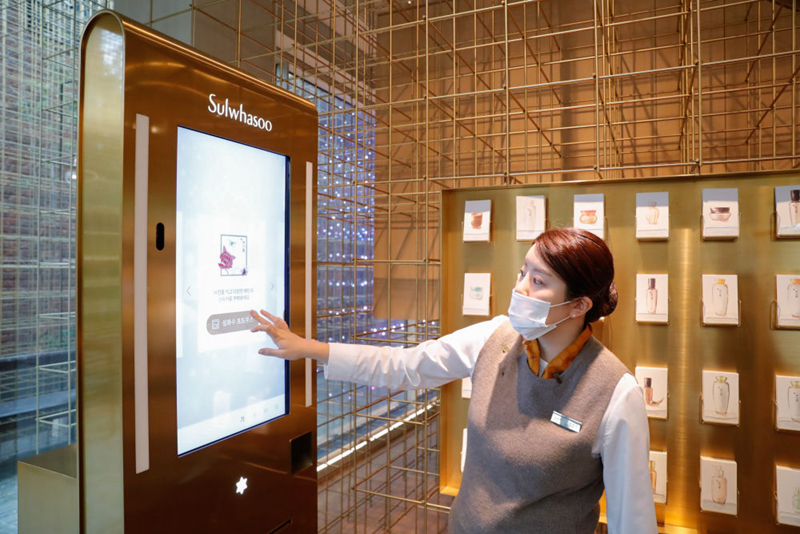 10月27日,工作人員在位于韓國首爾江南區(qū)的愛茉莉太平洋雪花秀旗艦店內(nèi)指導(dǎo)客人體驗(yàn)店內(nèi)設(shè)施??偛课挥陧n國首爾的美妝企業(yè)愛茉莉太平洋集團(tuán)今年將連續(xù)第三次參加進(jìn)博會。新華社記者 王婧嬙 攝