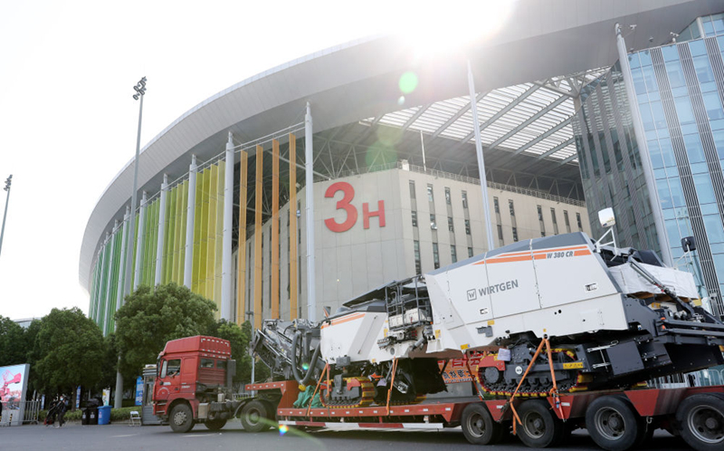 第三屆進(jìn)博會的首件進(jìn)場展品——德國維特根集團(tuán)W380CR冷再生機(jī)運(yùn)抵國家會展中心(上海)(10月23日攝)。新華社記者 方喆 攝