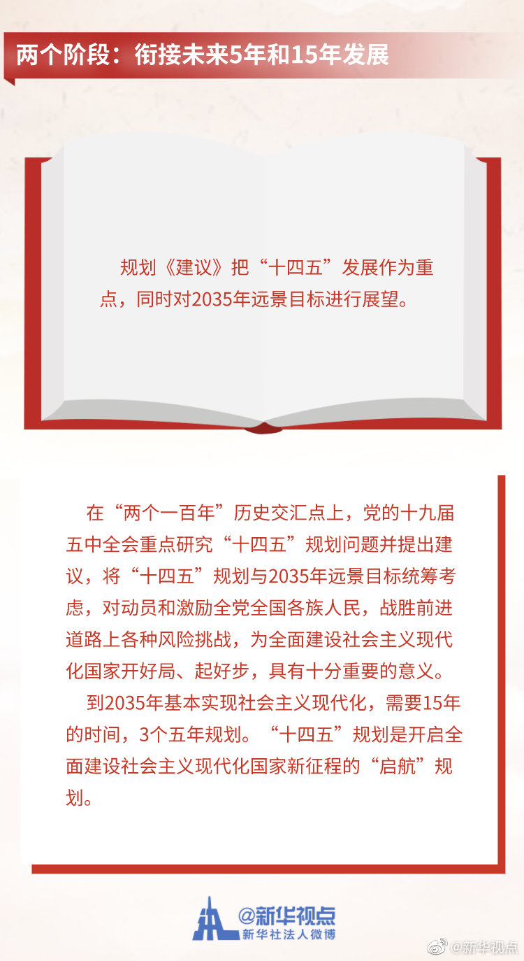 《中共中央關(guān)于制定國民經(jīng)濟(jì)和社會發(fā)展第十四個(gè)五年規(guī)劃和二〇三五年遠(yuǎn)景目標(biāo)的建議》3日公布。這份長約2萬字的文件,為未來5年及15年的中國發(fā)展勾勒藍(lán)圖。記者梳理出規(guī)劃《建議》中的“一二三四五”,為觀察中國發(fā)展走向提供一個(gè)獨(dú)特視角。