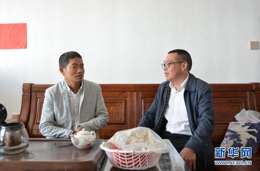 福建省龍巖市長(zhǎng)汀縣策武鎮(zhèn)副鎮(zhèn)長(zhǎng)張橋水向劉春生(左)了解收入情況(11月11日攝)。新華社記者 張華迎 攝
